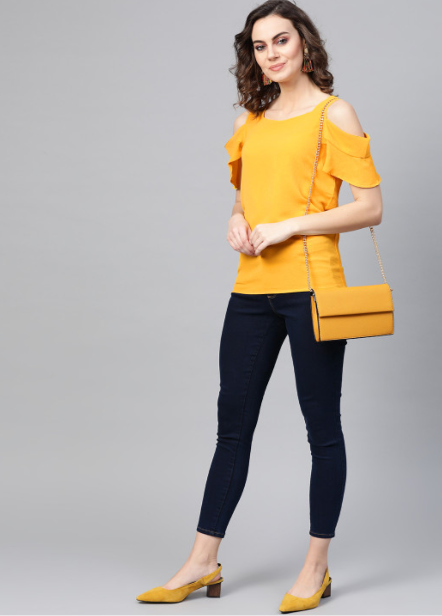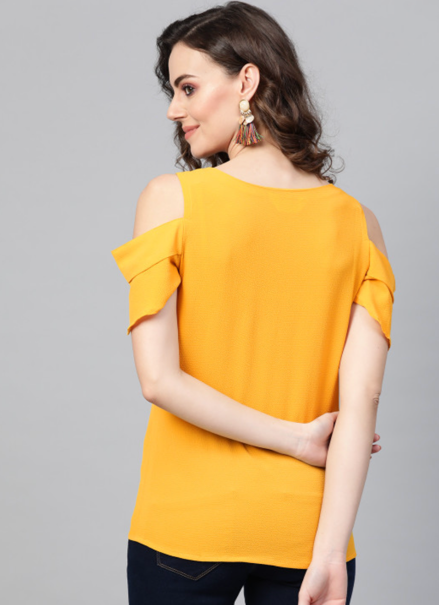 Women Mustard Yellow Solid Cold-Shoulder Top