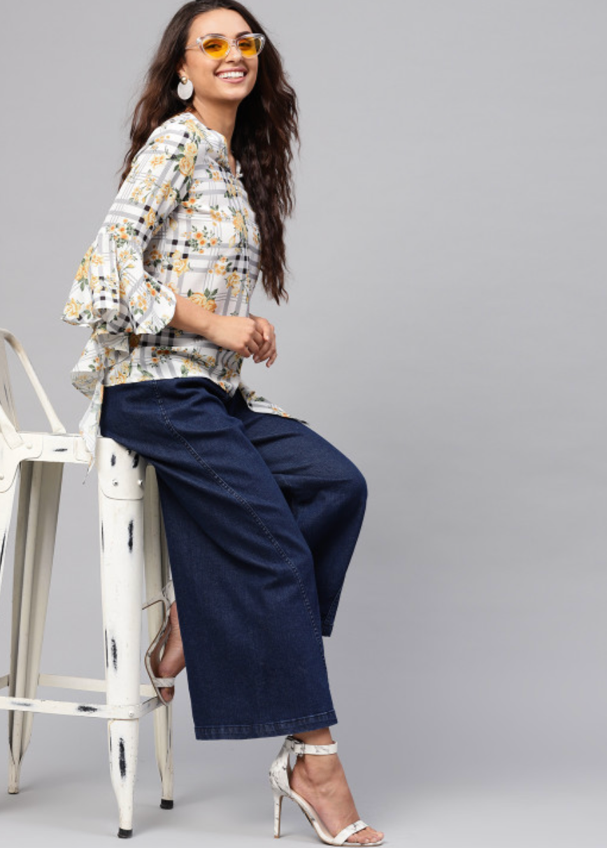 Women White & Black Checked Top